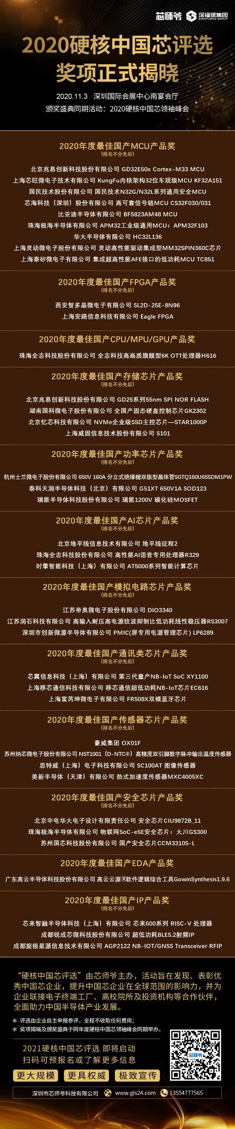 “2020硬核中國(guó)芯”產(chǎn)品獲獎(jiǎng)榜單