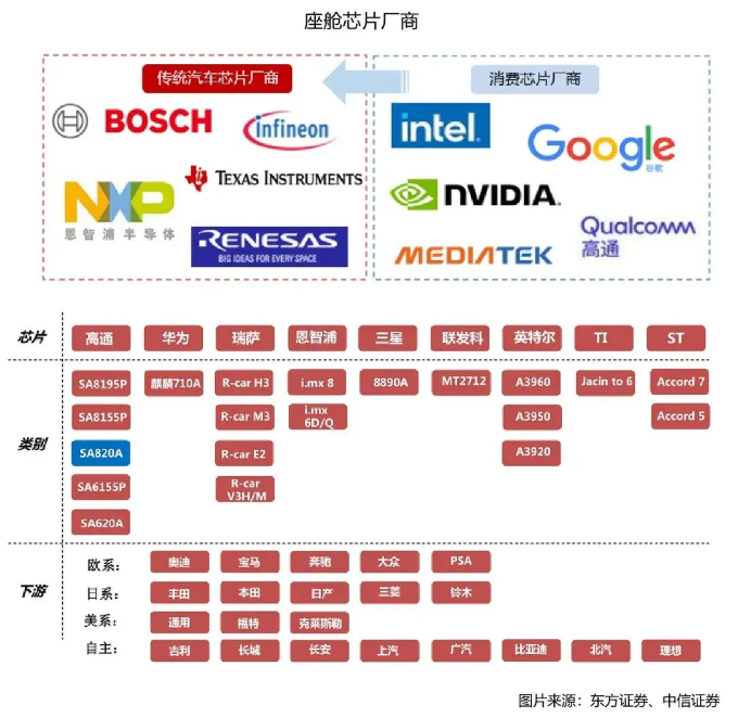 此外,三星、瑞薩、恩智浦、德州儀器等傳統(tǒng)車(chē)載SoC廠商也均有智能座艙SoC產(chǎn)品推出。