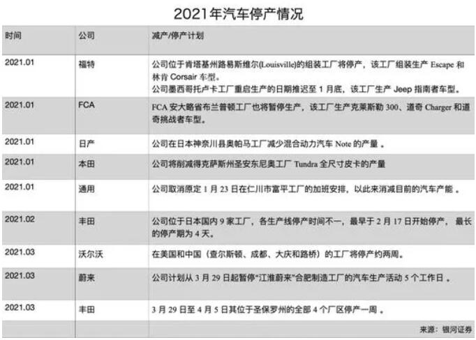 此后至今,這份因缺芯停產(chǎn)的“名單”越拉越長(zhǎng),本田、日產(chǎn)、FCA、通用、戴姆勒等多家國(guó)際巨頭先后宣布停產(chǎn)/減產(chǎn)計(jì)劃。