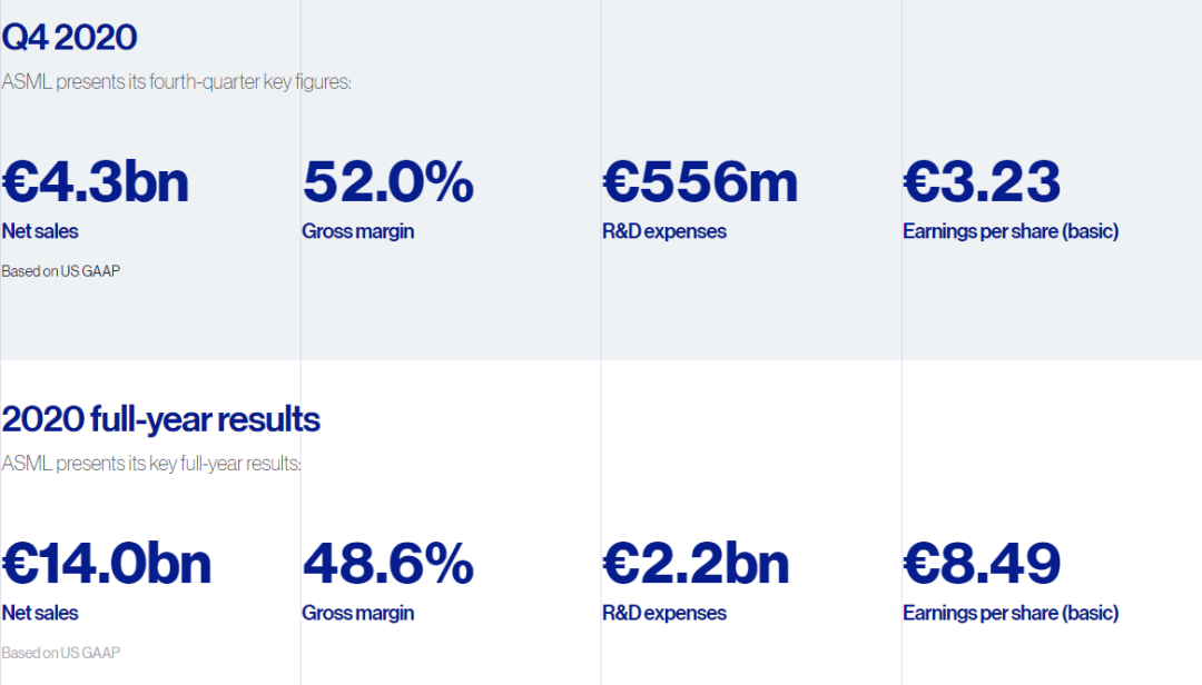 1月20日,ASML召開了2020第四季度和全年財(cái)報(bào)電話會(huì)議,ASML總裁兼首席執(zhí)行官Peter Wennink在會(huì)上透露,ASML第四季度銷售額為43億歐元,2020年全年凈銷售總額為140億歐元(約合170.45億美元)。