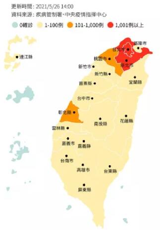 中國(guó)臺(tái)灣地區(qū)流行疫情指揮中心5月27日公布新增405例確定病例,分別為401例本土個(gè)案及4例境外移入個(gè)案;另有“校正回歸”本土個(gè)案266例,總計(jì)671例。確診個(gè)案中新增13例死亡。