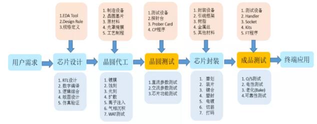 制造一枚芯片,產(chǎn)業(yè)鏈從上游到下游分別是:設(shè)計(jì)、流片、封裝、測(cè)試,目前市場(chǎng)的主要注意力都放在設(shè)計(jì)、流片環(huán)節(jié),測(cè)試甚至壓根就沒(méi)有被當(dāng)成是一個(gè)單獨(dú)的行業(yè),而是與封裝并稱為封測(cè)。