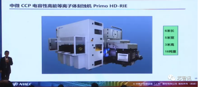 下圖是中微半導(dǎo)體最近開(kāi)發(fā)的CCP電容性高能等離子刻蝕機(jī)Primo HD-RIE,有6米長(zhǎng),5米寬,大概3米高,有16噸重。