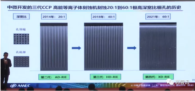 “我們不斷改進(jìn)了反應(yīng)器設(shè)計(jì)和設(shè)備性能,從2014年到2021年,我們的刻蝕設(shè)備最難做的是高身寬比細(xì)孔,從20:1做到40:1,現(xiàn)在可以突破做到60:1的身寬比,要做成更高可靠設(shè)備還是需要努力?!?span style="box-sizing: border-box !important; max-width: 100%; margin: 0px; padding: 0px; outline: 0px; overflow-wrap: break-word !important;">尹志堯說(shuō)到。