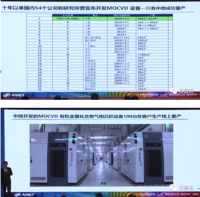 根據(jù)統(tǒng)計(jì)數(shù)據(jù)顯示,近十年以來(lái),國(guó)內(nèi)已有54家公司和研究所曾宣布開(kāi)發(fā)MOCVD設(shè)備,但是只有中微半導(dǎo)體成功量產(chǎn)。