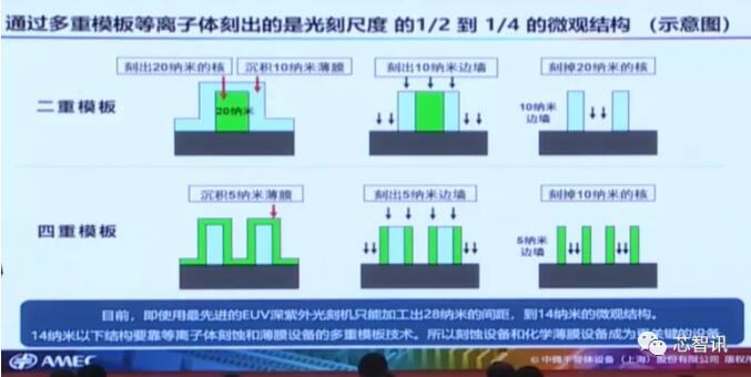 從邏輯芯片制造來(lái)看,由于光刻機(jī)波長(zhǎng)限制,EUV光刻機(jī)要做到10nm以下,實(shí)際是靠著二重模板,四重模板效應(yīng)來(lái)實(shí)現(xiàn)的。而這其中需要更多的應(yīng)用到等離子刻蝕機(jī)、化學(xué)薄膜沉積設(shè)備。比如邏輯器件從14nm做到5nm,整個(gè)工藝過(guò)程大概增加了一倍(現(xiàn)在已經(jīng)需要到一千個(gè)步驟),但是其中需要用到等離機(jī)刻蝕機(jī)的步驟增加了三倍。