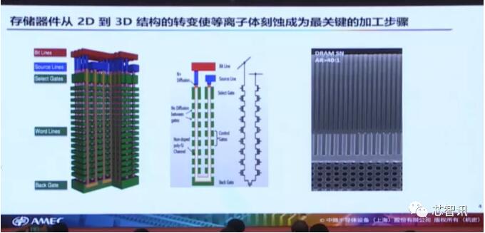 從存儲(chǔ)芯片來(lái)看,過(guò)去如果是做2D NAND Flash,整個(gè)生產(chǎn)線的設(shè)備成本當(dāng)中,刻蝕機(jī)只占20%-25%,但是現(xiàn)在做一條3D NAND Flash產(chǎn)線,刻蝕設(shè)備占比將高達(dá)40%-50%。