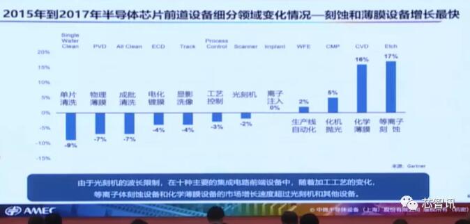 尹志堯也表示,芯片制造產(chǎn)業(yè)離不開(kāi)半導(dǎo)體設(shè)備產(chǎn)業(yè)的支撐,但是半導(dǎo)體設(shè)備市場(chǎng)有兩個(gè)缺點(diǎn),一個(gè)是市場(chǎng)規(guī)模很小,只有幾百億美元,是芯片整個(gè)產(chǎn)業(yè)的不到十分之一。另一個(gè)是半導(dǎo)體設(shè)備產(chǎn)業(yè)是躲在幕后的B2B模式,多數(shù)人不曉得設(shè)備做什么。但是半導(dǎo)體設(shè)備的作用是非常重要的。并且,現(xiàn)在有兩個(gè)主要的驅(qū)動(dòng)力使得等離子刻蝕機(jī)、化學(xué)薄膜沉積設(shè)備的重要性越來(lái)越凸顯。一個(gè)是半導(dǎo)體芯片從2D到3D的演變;另一個(gè)則是先進(jìn)制程工藝的持續(xù)發(fā)展。