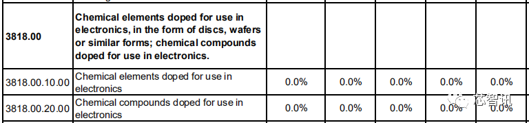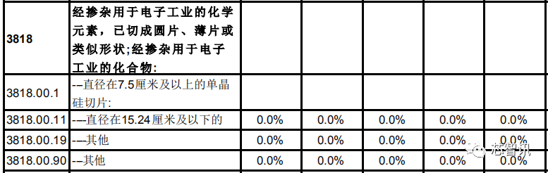 在經(jīng)摻雜用于電子工業(yè)的硅片及硅材料方面,日本對中國的關(guān)稅基準稅率全部為0。