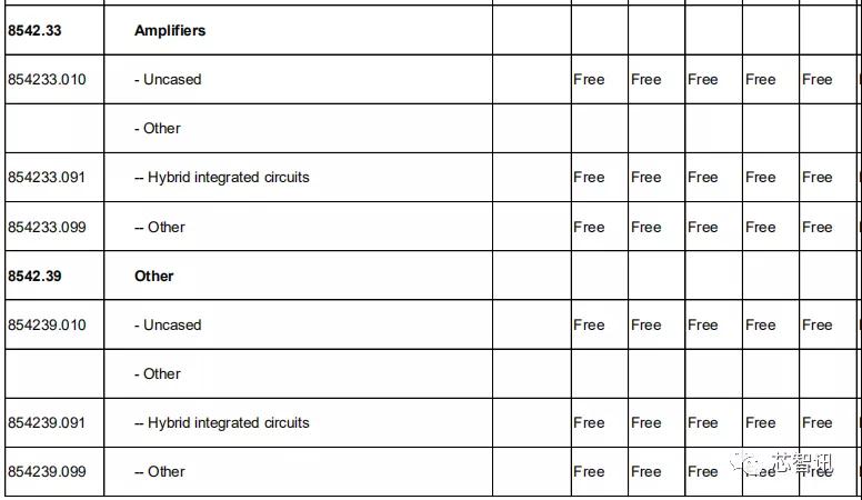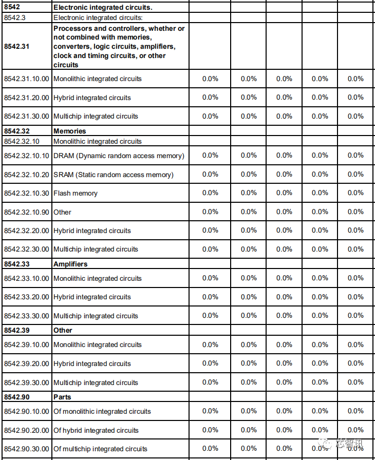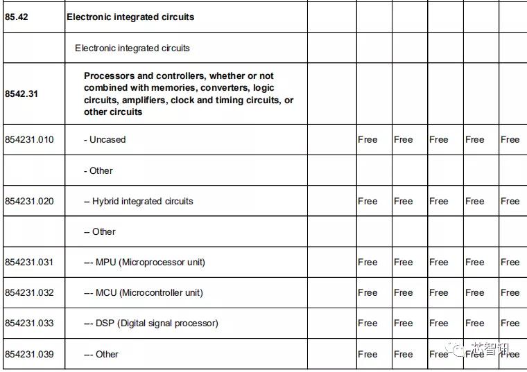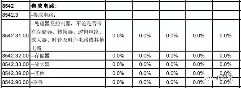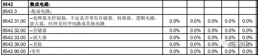 在集成電路方面,包括處理器、控制器、存儲器、放大器及其他集成電路器件和零件,日本對中國的關(guān)稅基準稅率也都全部為0。