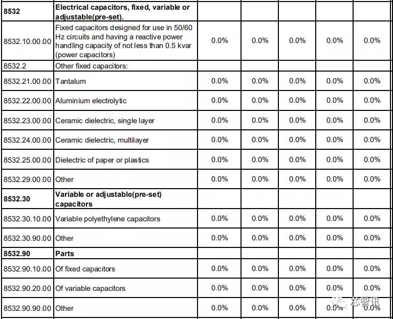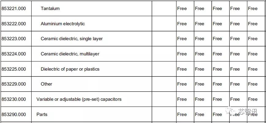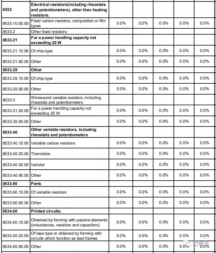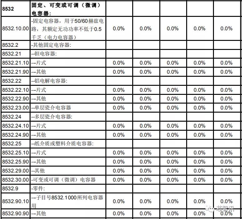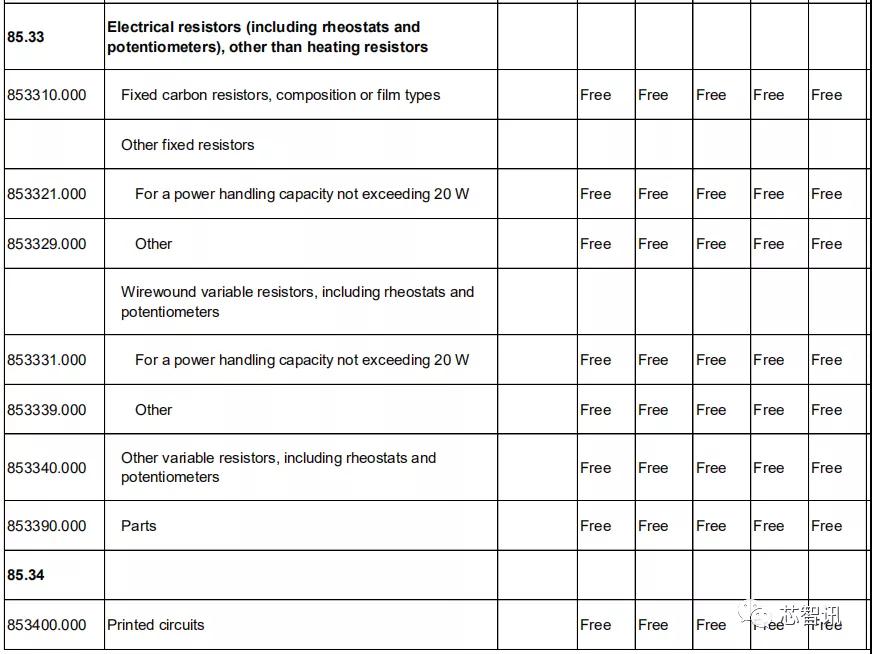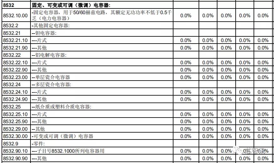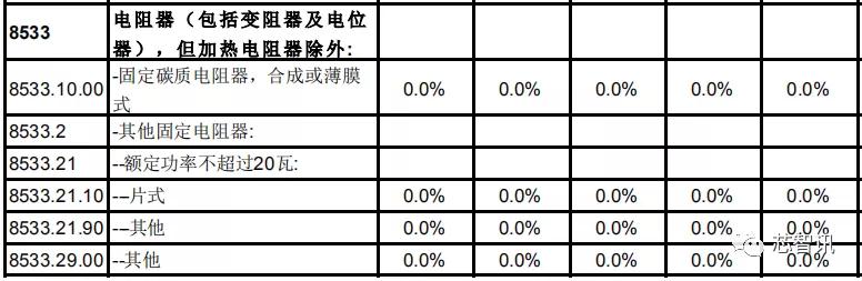 在電阻、電容、印刷電路方面,日本對中國的關(guān)稅基準稅率也都全部保持為0。