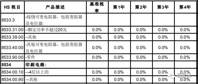 此外在電阻、電容、印刷電路方面,中國對韓國的關(guān)稅基準稅率也都全部保持為0。
