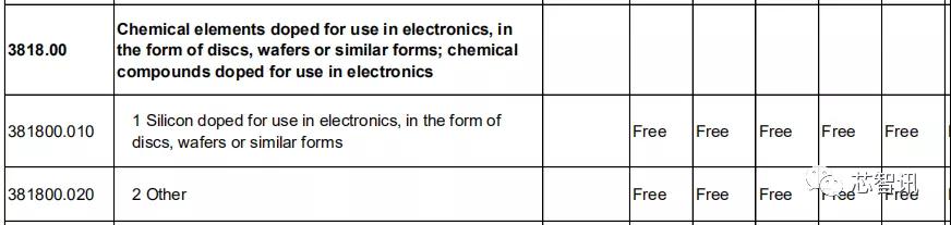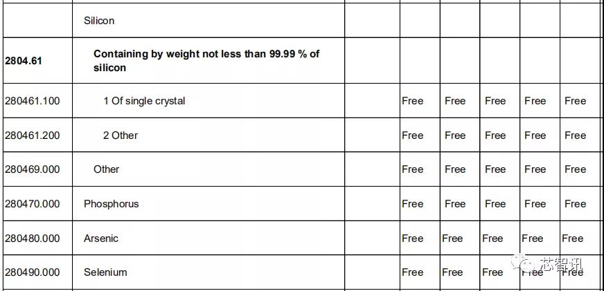 在硅材料方面,按重量計硅含量不低于99.99%,經(jīng)摻雜用于電子工業(yè)的化合物或直徑在7.5cm-15.24cm之間單晶硅片,中國對韓國的關(guān)稅基準稅率為0。此外,直徑30cm以上的單晶硅棒以及經(jīng)摻雜用于電子工業(yè)其他單晶硅棒,基準稅率均為4%,[敏感詞]年將直接降至0。