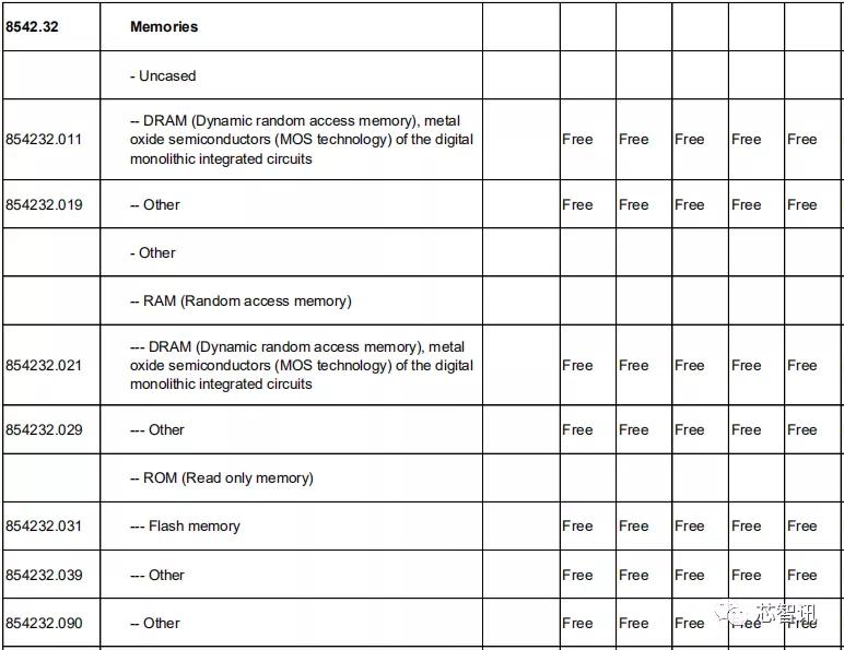 在集成電路方面,包括處理器、控制器、存儲器、放大器及其他集成電路器件和零件,韓國對中國的關(guān)稅基準稅率也都全部保持為0。