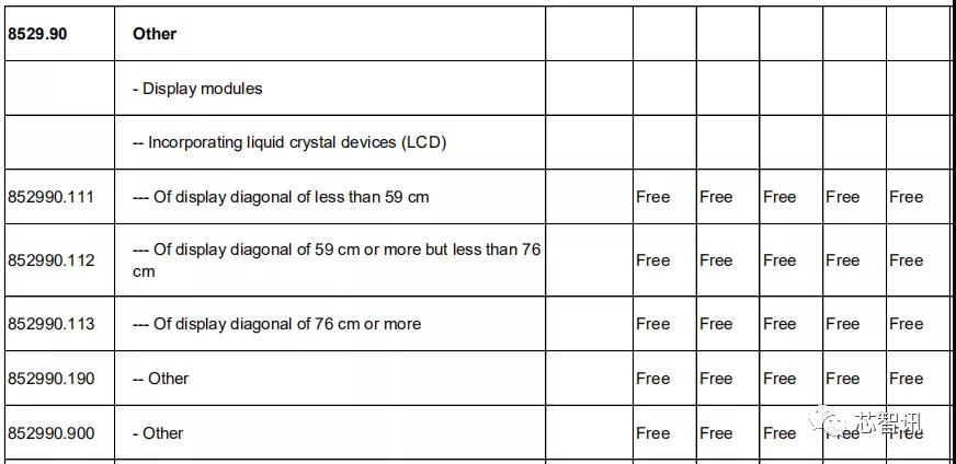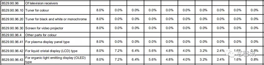 在電視機或顯示器所需的顯示模組,日本對中國的關(guān)稅基準稅率均為0。