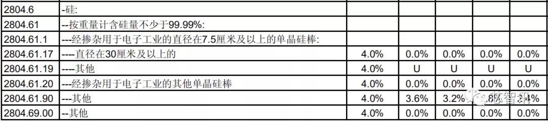 首先在硅材料方面,經(jīng)摻雜用于電子工業(yè)的直徑在7.5cm-15.24cm之間單晶硅片基準稅率為0。此外,直徑30cm以上的單晶硅棒以及經(jīng)摻雜用于電子工業(yè)其他單晶硅棒,基準稅率為4%,[敏感詞]年將直接降至0。