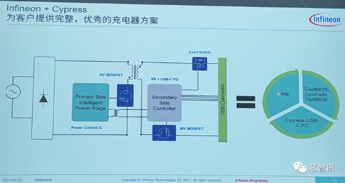 目前英飛凌與賽普拉斯的產(chǎn)品組合,已經(jīng)涵蓋了功率級、原邊、副邊,還有控制器、協(xié)議、高壓硅MOS、低壓硅MOS、氮化鎵等,可以滿足客戶對于大功率、小型化、統(tǒng)一性、通用性、成本優(yōu)化方案等需求。