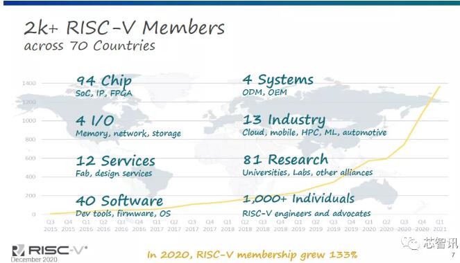 根據(jù)RISC-V官網(wǎng)提供的PPT資料顯示,目前RISC-V基金會成員已有超過2000家,覆蓋了70個國家。而在此之前的2018年,RISC-V基金會成員只有不到200家左右??梢哉f,近兩年來RISC-V之所以能夠發(fā)展如此之迅猛,中國廠商可謂是功不可沒。