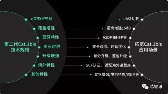 在展銳8910DM獲得市場(chǎng)認(rèn)可的同時(shí),為了更好地滿(mǎn)足當(dāng)前物聯(lián)網(wǎng)應(yīng)用部署中的關(guān)鍵需求,同時(shí)進(jìn)一步拓寬應(yīng)用場(chǎng)景,展銳還在繼續(xù)推動(dòng)Cat.1 bis技術(shù)的演進(jìn)。在今天的發(fā)布會(huì)上,展銳公布了一系列Cat.1bis新技術(shù)特性:包括eDRX/PSM特性、覆蓋增強(qiáng)特性、BT特性、專(zhuān)業(yè)對(duì)講、升級(jí)增強(qiáng)、海外特性等。引入新技術(shù)特性是為了