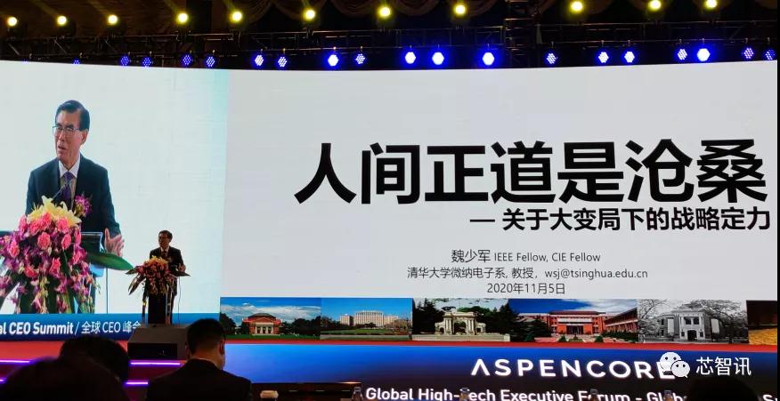 11月5日,由APENCORE主辦的“2020全球CEO峰會(huì)”在深圳召開(kāi)。中國(guó)半導(dǎo)體行業(yè)協(xié)會(huì)集成電路設(shè)計(jì)分會(huì)理事長(zhǎng)魏少軍教授做了主題為《人間正道是滄桑-關(guān)于大變局下的戰(zhàn)略定力》的主題演講。