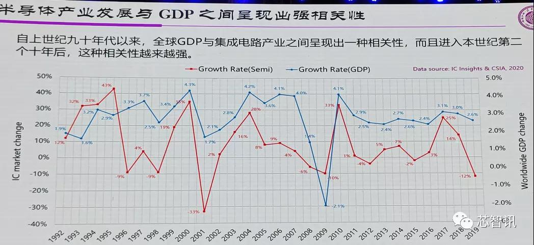 國(guó)際上的相關(guān)的研究也顯示,自上世紀(jì)九十年代以來(lái),全球半導(dǎo)體產(chǎn)業(yè)發(fā)展和GDP之間呈現(xiàn)出強(qiáng)相關(guān)性,特別2010年以來(lái),相關(guān)性系數(shù)達(dá)到0.9以上。