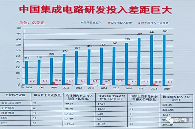 近年來(lái),隨著國(guó)家對(duì)于集成電路產(chǎn)業(yè)的重視,為了加速集成電路產(chǎn)業(yè)的發(fā)展,國(guó)家投了很多錢(qián),比如一系列的重大專(zhuān)項(xiàng),但是相比國(guó)際研發(fā)投入仍相差巨大。