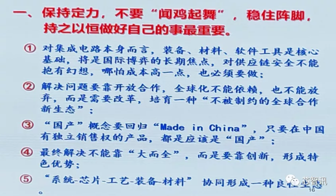 中國(guó)需要保持自己的節(jié)奏和發(fā)展態(tài)勢(shì),專(zhuān)心做好自己的事最重要,放眼下一個(gè)15年,通過(guò)系統(tǒng)性的策劃,通過(guò)自主研發(fā)、特色創(chuàng)新,才能真正解決受制于人的問(wèn)題。