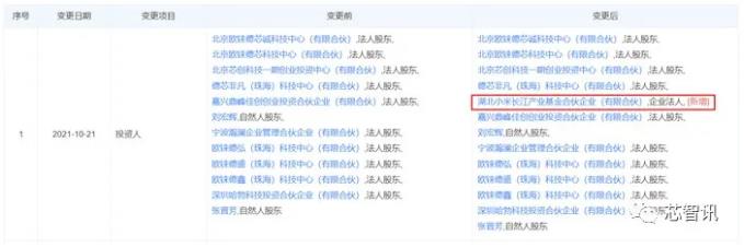 據(jù)天眼查消息顯示,10月21日,北京歐錸德微電子技術(shù)有限公司發(fā)生工商變更,新增小米長(zhǎng)江產(chǎn)業(yè)基金為股東,持股比例為5%。而此前深圳哈勃入股歐錸德,持股比例為16.359%。