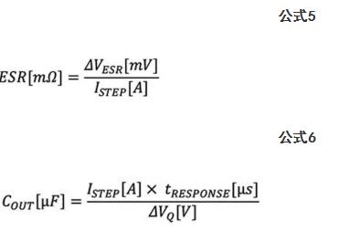快速負(fù)載瞬變期間輸出電壓與期望輸出的可接受偏差也會影響輸出電容容量和ESR阻值的選擇。具體而言,在開關(guān)穩(wěn)壓器控制器增大PWM占空比來響應(yīng)負(fù)載瞬變前,輸出電容器必須能夠在瞬變期間支持負(fù)載電流。如需計算負(fù)載階躍期間最小輸出偏差所需的輸出電容和ESR,可分別使用公式5和公式6: