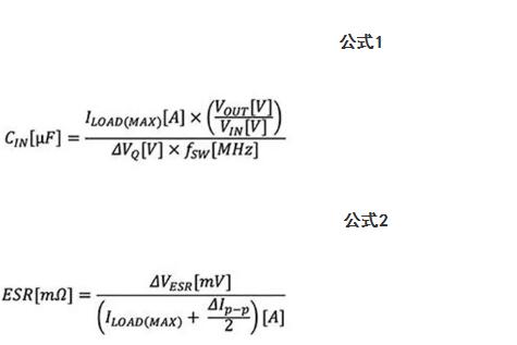 借助基于關(guān)鍵公式的一些成熟技術(shù)是不錯的切入點。輸入電壓紋波包括ΔVQ(由輸入電容器放電產(chǎn)生)和ΔVESR(由輸入電容器的等效串聯(lián)電阻 (ESR) 產(chǎn)生)。如果已指定輸入端的電壓紋波[敏感詞]峰峰值,分別通過公式1和公式2即可估算大容量電容器的所需輸入電容 (CIN)和ESR: