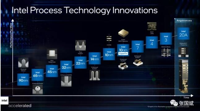 英特爾研究院副總裁、英特爾中國研究院院長宋繼強博士在接受采訪時指出英特爾以前是隔年更新工藝,這次直接以“年”為單位的工藝更新,節(jié)奏很快?!拔覀?yōu)槭裁匆獙?jié)點開始重新命名?其實對外界做了很多咨詢,因為從20年前,從Donald law開始失效,從純粹靠晶體管微縮去提高芯片晶體管密度的技術(shù)失效之后就采用了其他各種各樣的技術(shù)來提高我們芯片上的晶體管密度,有3D的,有應(yīng)變硅等等。它不再是通過簡單的根據(jù)晶體管當(dāng)中的柵極長度(gate length)去評估我的芯片生產(chǎn)工藝是幾納米?!彼忉屨f,“2011年之后,市場上說的“幾納米”工藝變成了一個市場營銷代名詞。所以對于客戶來講,你說他現(xiàn)在接受了這樣一個命名,是不是說這個命名未來就可以持續(xù)下去了?你也可以想象,如果說大家都把2納米、3納米用完了之后再往后怎么辦?大家都說我是1納米嗎?你真的到了1納米嗎?按照這個速度很快就要前進到1納米了該怎么辦?英特爾和很多外界包括學(xué)術(shù)界、產(chǎn)業(yè)界的客戶做了一些調(diào)研,大家希望重新恢復(fù)到正確的命名,包括怎么樣去理清楚這些命名到底和制造工藝之間有沒有直接的關(guān)系?!? 他表示現(xiàn)在英特爾重新梳理了一下之后,覺得至少仍然可以用數(shù)字,用數(shù)字的遞減代表工藝還在不斷的向前發(fā)展,但是英特爾已經(jīng)不再強調(diào)這個數(shù)字和納米之間的關(guān)系?!耙驗楸旧硇袠I(yè)內(nèi)的人知道,它沒有關(guān)系,或者說和柵極長度之間的關(guān)系。這是需要一個概念轉(zhuǎn)換的過程的?!彼赋?,“同時我們的命名也為未來10年發(fā)展留下了空間,我們到Intel 3之后,沒有到2到1,而是到了Intel 20。因為到了Intel 20之后可以預(yù)見到,到1中間還會有一些未來可能會發(fā)生的創(chuàng)新。其實我們現(xiàn)在并不清楚,你要給未來留下空間,所以到20的時候,我們叫20A,是給未來繼續(xù)留下了空間。所以現(xiàn)在這個命名方案,對于英特爾,目標(biāo)是一直要去推進半導(dǎo)體制造工業(yè)的,所以未來10年我們知道怎么樣通過半導(dǎo)體技術(shù)去推進它的PPA(性能、功耗、面積),那就需要留下足夠的空間。因此基于這些邏輯重新梳理一下這些,同時我們也趁著這個時候把封裝技術(shù)給聯(lián)系起來。因為以前太過強調(diào)我通過幾納米去縮小晶體管就好了,3納米的工藝也沒有真的把晶體管收縮到3納米。” 2 封裝技術(shù)繼續(xù)創(chuàng)新