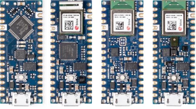 Arduino一向以代碼開源,易學(xué)易用,資料齊全和生態(tài)完善而風(fēng)靡全球創(chuàng)客界,也吸引了全球數(shù)以千萬計的電子工程師和愛好者。本次Funpack的開發(fā)板是Arduino品牌下的Nano 33 BLE Sense板卡,在這里我們簡稱BLE Sense。在圖2中我們列出了Nano家族的4個成員,僅從外觀就不難看出,最右側(cè)的BLE Sense是Nano家族中最配備傳感器最多,性能最強大并且成本[敏感詞]的板卡。
