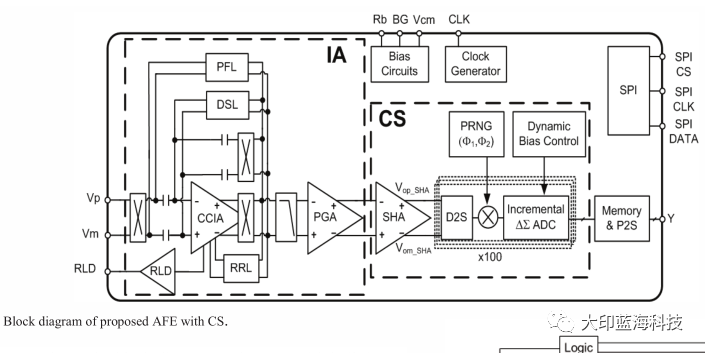 這款在前級差分輸入的儀放(IA)后級跟上了取樣保持放大(SHA)與Delta-sigma ADC構(gòu)成的 IA+CS的AFE block