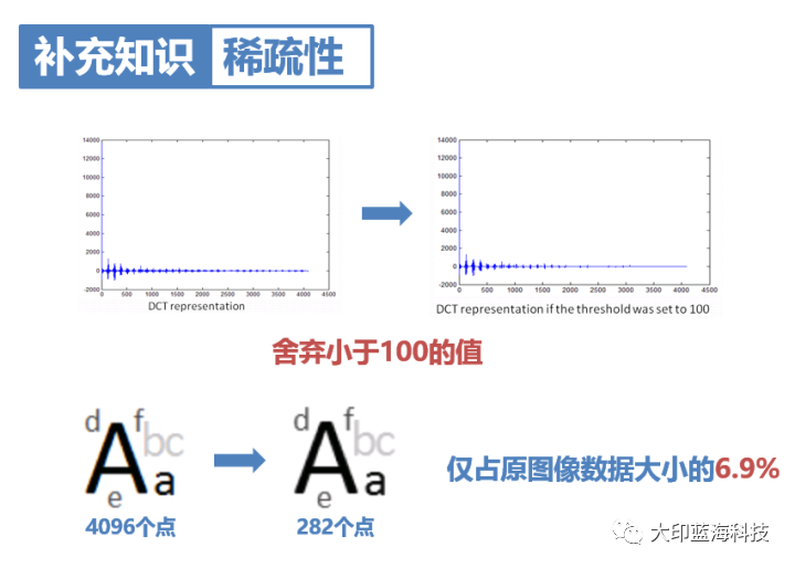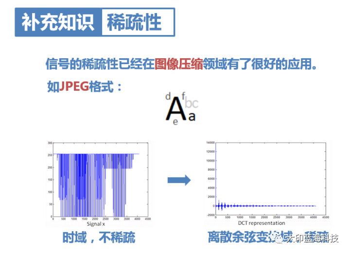 11. 這里針對信號的稀疏性和信號壓縮額外補充一下:其實,信號的稀疏性已經(jīng)在圖像壓縮領(lǐng)域有了很廣泛的應(yīng)用。利用信號的稀疏性,可以對信號進行壓縮。如圖像壓縮領(lǐng)域的JPEG格式,就是將圖像變換到離散余弦域,得到近似稀疏矩陣,只保留較大的值,從而實現(xiàn)壓縮。