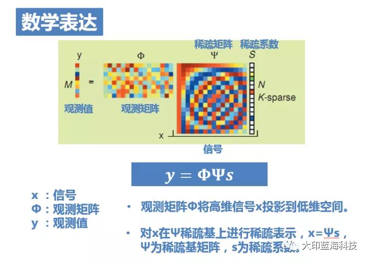 如果一個信號在某個變換域是稀疏的,那么就可以用一個與變換基不相關(guān)的觀測矩陣將變換所得高維信號投影到一個低維空間上,然后通過求解一個優(yōu)化問題就可以從這些少量的投影中以高概率重構(gòu)出原信號。
