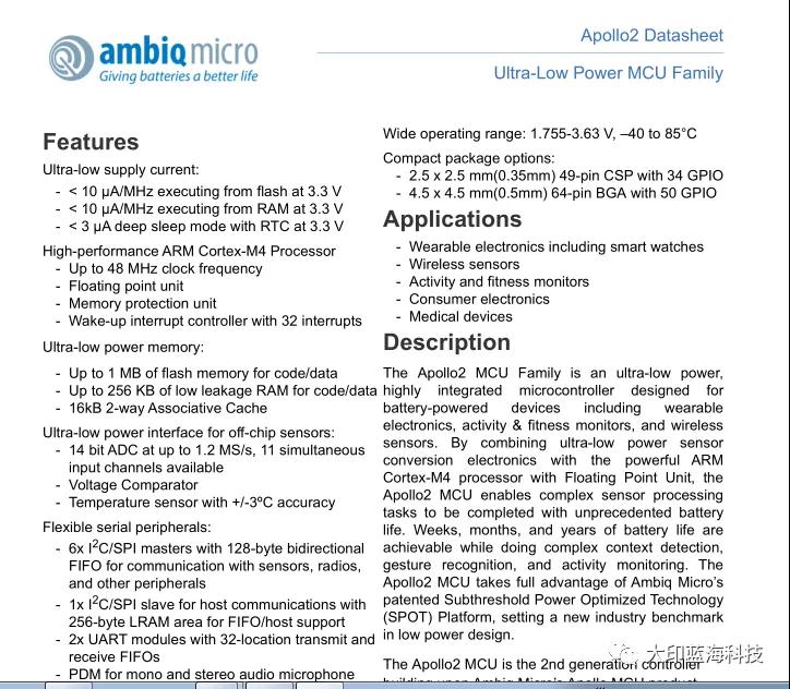 我這里借用了業(yè)內(nèi)知名的LP MCU 供應(yīng)商ambiq micro公司 2017年release的datasheet.