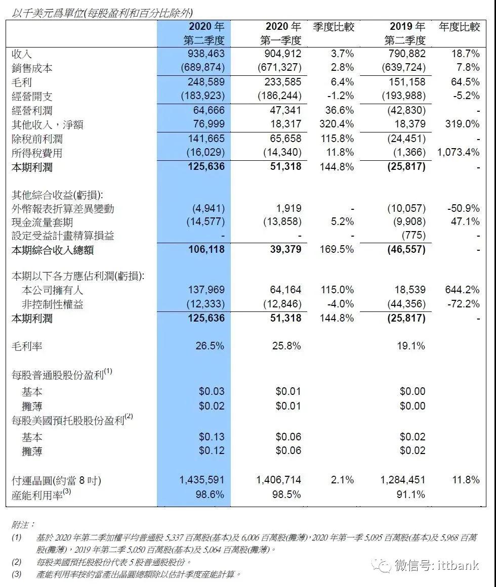 中芯國際發(fā)布了2020年第二季度財報,截至2020年6月30日,營收達9.38億美元(約65.28億人民幣),環(huán)比增長4%,同比增長19%;毛利2.49億美元,環(huán)比增加6.4%,同比增加64.5%。