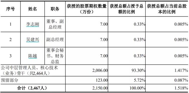 公告顯示,本激勵(lì)計(jì)劃的激勵(lì)對(duì)象均為公司董事、高級(jí)管理人員、中層管理人員及核心技術(shù)(業(yè)務(wù))骨干和董事會(huì)認(rèn)為需要激勵(lì)的其他人員,不包括獨(dú)立董事和監(jiān)事,亦不包括單獨(dú)或合計(jì)持有公司5%以上股份的股東或?qū)嶋H控制人及其配偶、父母和子女。