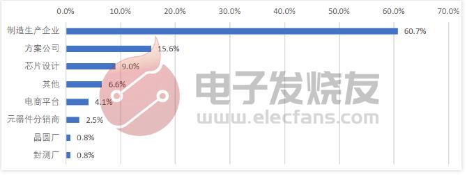 表一:參與調(diào)研的企業(yè)類別,制造生產(chǎn)企業(yè)達(dá)六成 數(shù)據(jù)來(lái)源:電子發(fā)燒友網(wǎng)《2021年電子元器件缺貨調(diào)查》