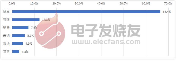 從受訪者的工作崗位來(lái)看,研發(fā)人員占比達(dá)到66.4%,管理崗位占比12.3%,此外還有來(lái)自銷售、采購(gòu)、市場(chǎng)等崗位的受訪者占有一定比例。研發(fā)人員和企業(yè)管理者是電子發(fā)燒友網(wǎng)的最主要用戶群,同時(shí)他們也是最為了解缺貨情況的知情者。