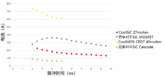 圖12:碳化硅MOSFET短路能力比較