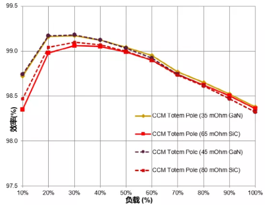 圖14:碳化硅MOSFET,氮化鎵晶體管在PFC級(jí)效率曲線