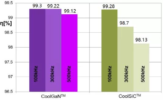 圖16:兩種功率器件在不同工作頻率下效率對(duì)比