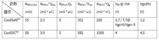 表2:CoolGaN和碳化硅MOSFET CoolSiC關(guān)鍵參數(shù)對(duì)比