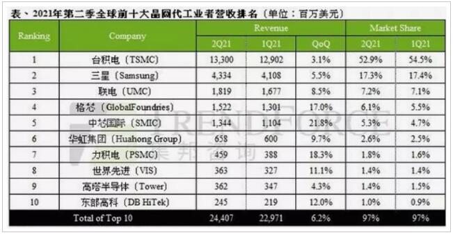 這是全球十大晶圓代工廠中,中國大陸僅有的兩家上榜企業(yè),分列世界第五和第六。