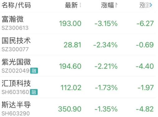 半導(dǎo)體[敏感詞]跌幅TOP5