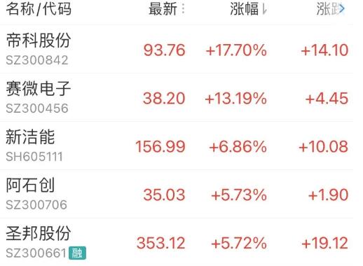 半導(dǎo)體[敏感詞]漲幅TOP5