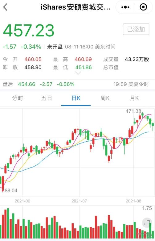 騰訊自選股數(shù)據(jù)顯示,8月11日美股半導(dǎo)體指數(shù)ETF(SOXX.US)收盤價格為457.23美元,跌幅為0.34%,總成交量達64.86萬股。
