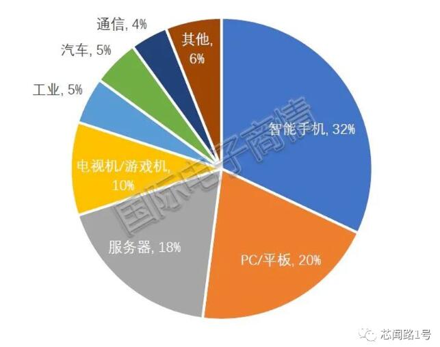 圖注:2020年12英寸晶圓產(chǎn)能應(yīng)用占比 制圖:國際電子商情 數(shù)據(jù)來源:SUMCO