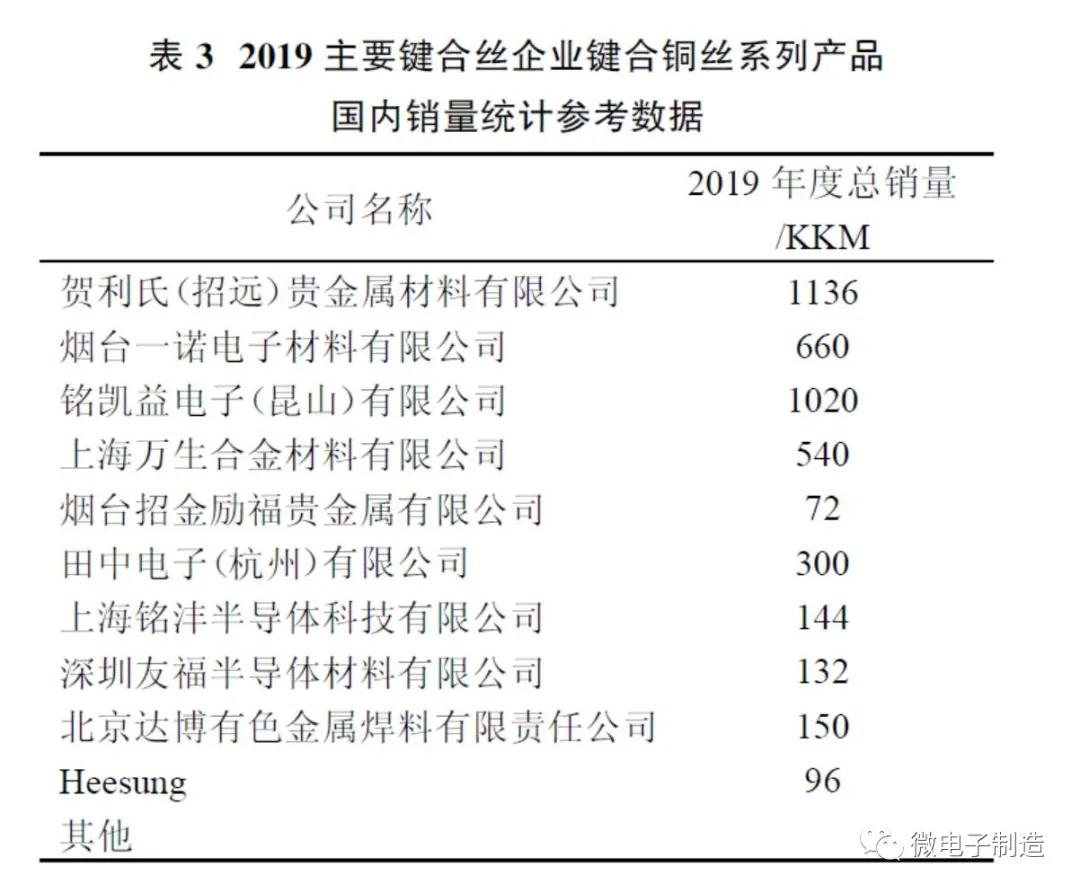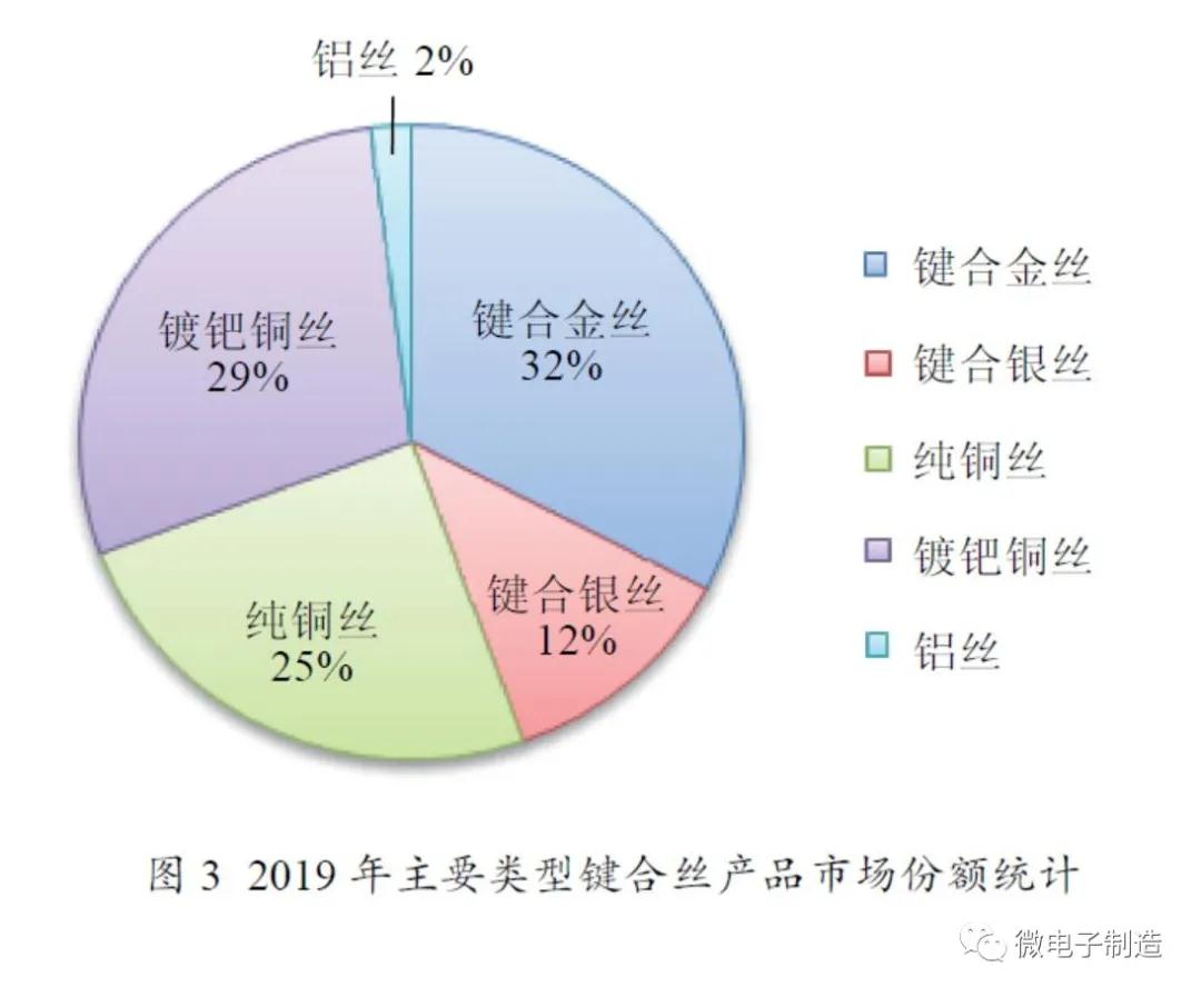 鍵合金絲因其獨特的金屬化學穩(wěn)定性和極具作業(yè)效率的工藝應(yīng)用優(yōu)勢,仍占據(jù)高端市場,目前主要應(yīng)用于高端IC產(chǎn)品、軍品器件模塊、LED大功率照明產(chǎn)品、LED電視手機背光產(chǎn)品、光通訊模塊、紅外接收發(fā)射管以及攝像頭模組產(chǎn)品等,2019年鍵合金絲在越來越多市場應(yīng)用上被低成本銅絲系列和銀絲系列產(chǎn)品所替代,份額已經(jīng)由原來的50%下降到33%。